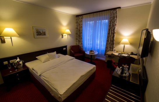 Ein Frühstücksbuffet steht jeden Morgen für Sie bereit und im gemütlichen Restaurant genießen Sie klassische deutsche Küche. Entspannen Sie auch in der Bar mit Mahagonimöbeln und in der Lounge im britischen Stil.